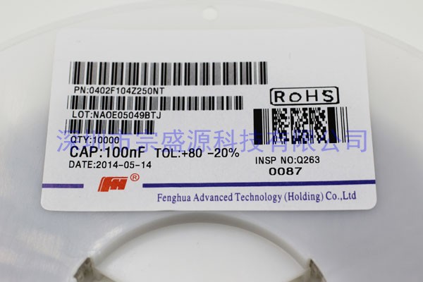 風華陶瓷電容 0402 25V 0.1UF 0402F104Z250NT